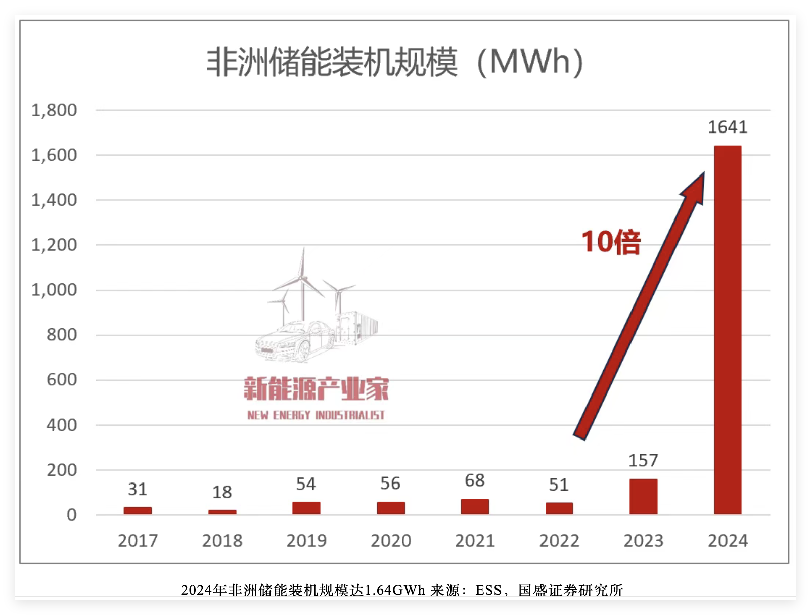 根据ESS,2024年非洲储能的装机规模已经达到1.64GWh,同比增长近10倍。